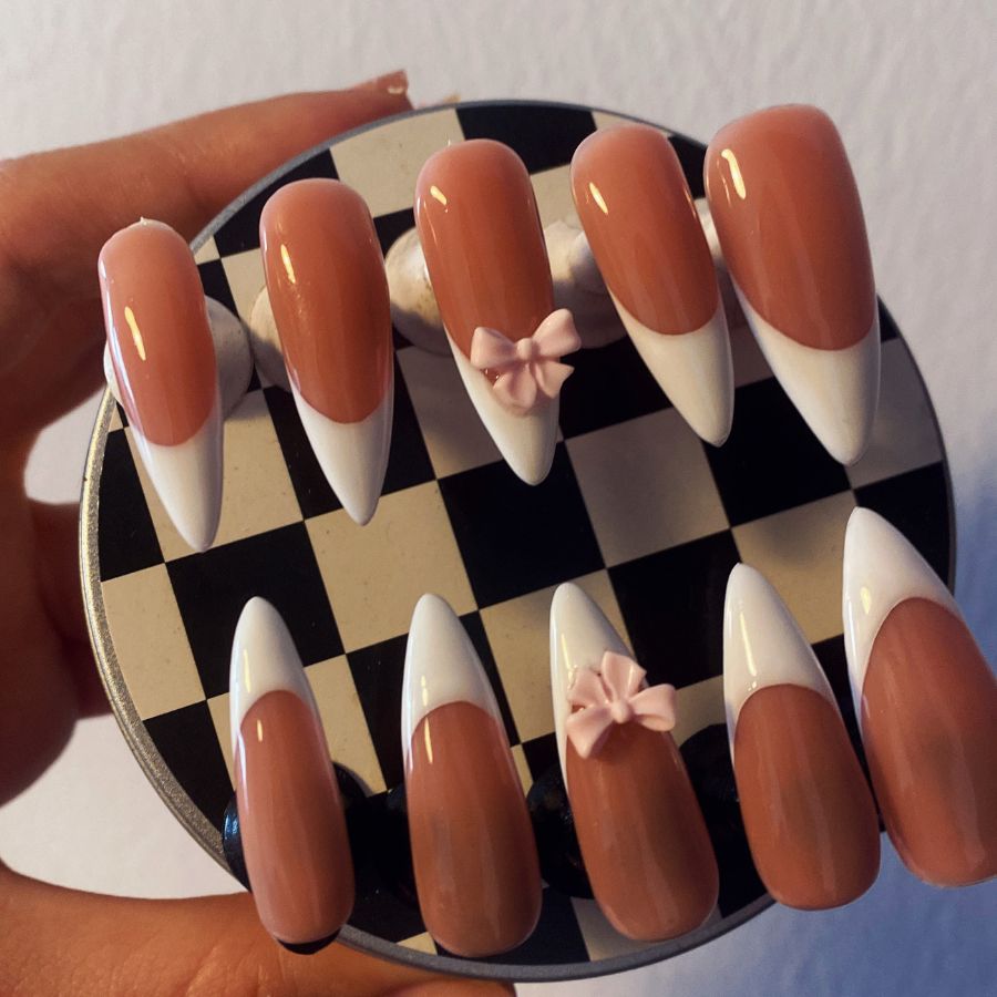 Uñas Press On (Manicura francesa) Blancas con lazo